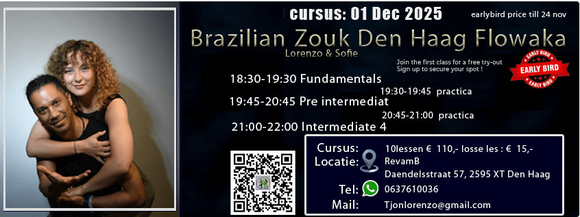 Are you new to us, but already familiar with Zouk basics? Contact us to join only on the first class as a trial lesson! the rest paid 🎉 tjonlorenzo@gmail.com or 06-37610036